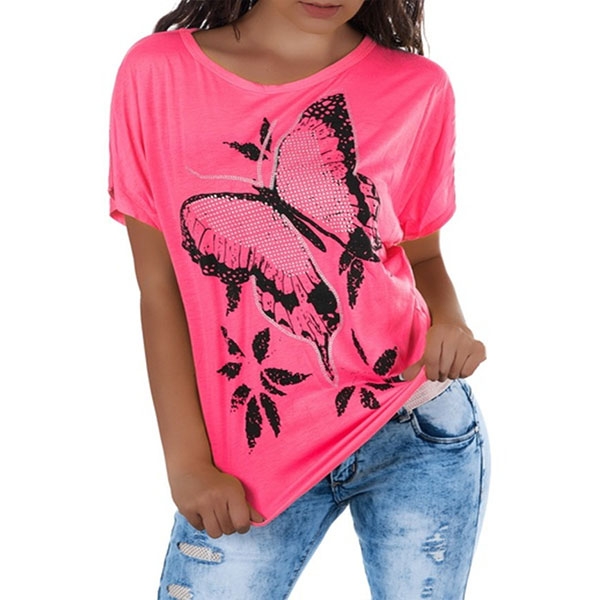 Finished with short sleeve and round neck design,the butterfly printed pattern design will make