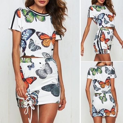 The butterfly printed pattern design makes it look so vivid and vibrant. Including a short sleeve round neck t-shirt