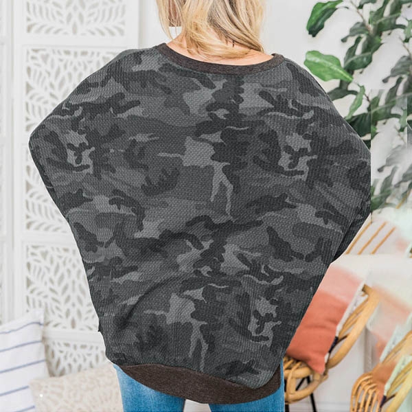 highlight your fashion taste? This camouflage printed t-shirt is finished with dolman sleeve,