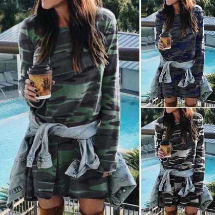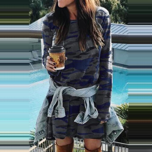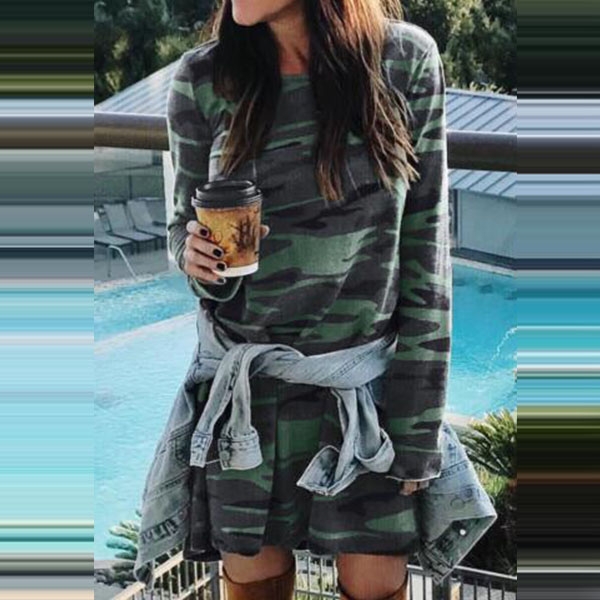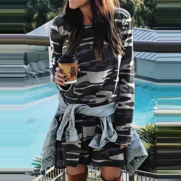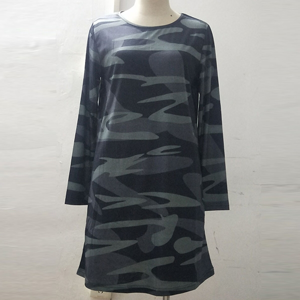 this easy-to-wear dress. The camouflage printed design makes this dress look so eye-catching and chic.