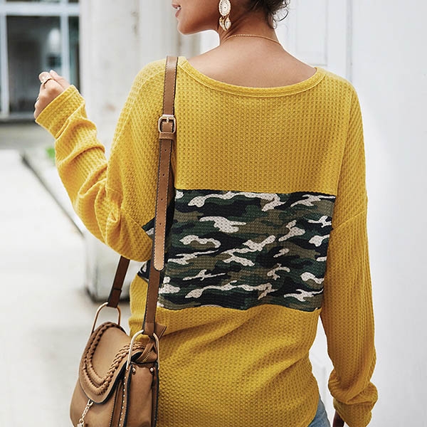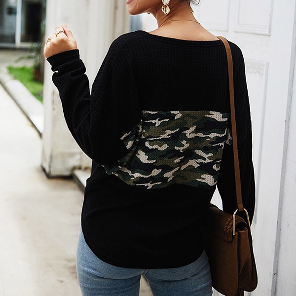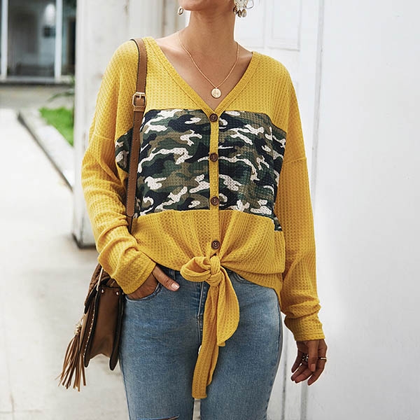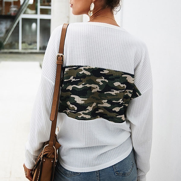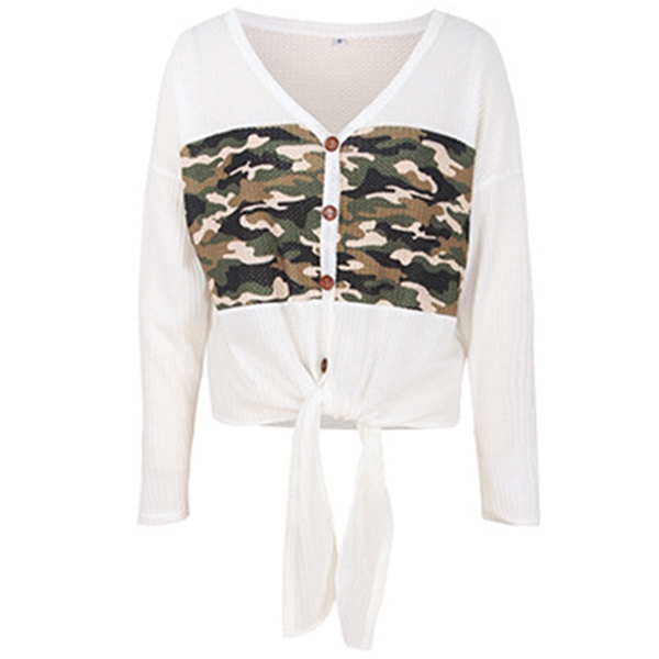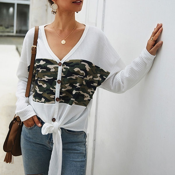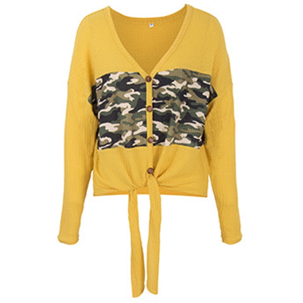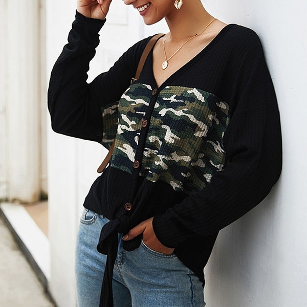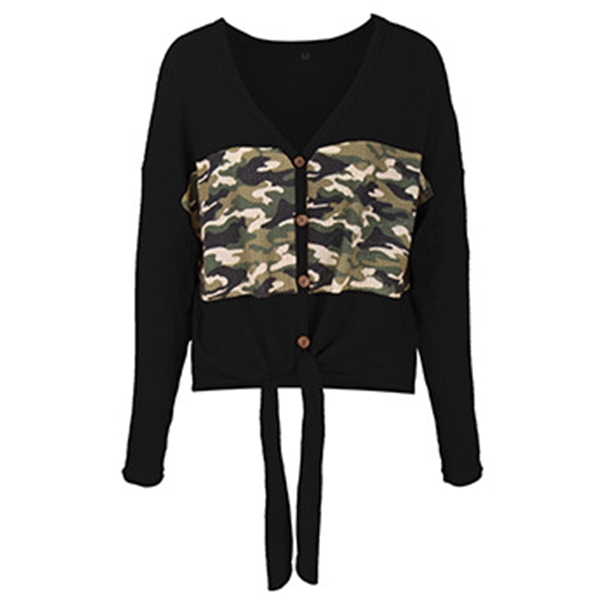 In the early autumn,this knit cardigan can easily strike your mind. The camouflage printed spliced
