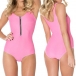 Solid color style,with sleeveless,round neck and slim fit design,this one-piece swimsuit can