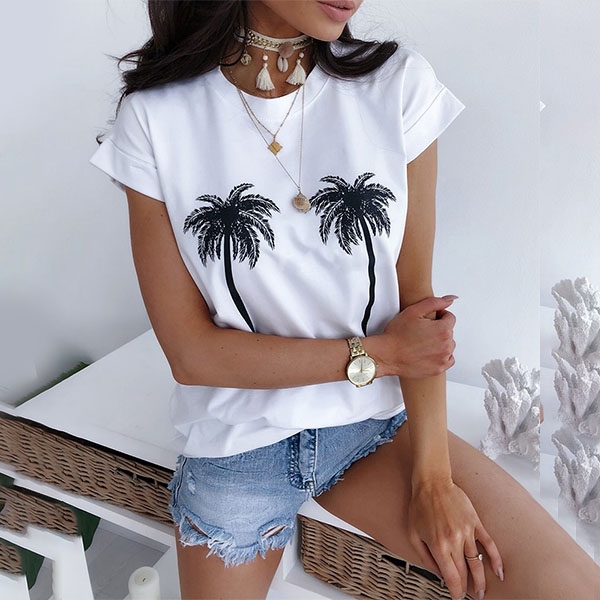 The coconut tree printed pattern design adds some chic and stylish flavor. Finished with short