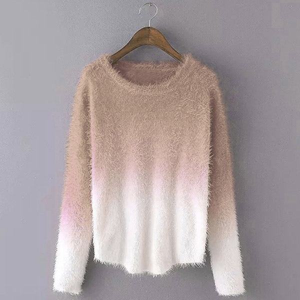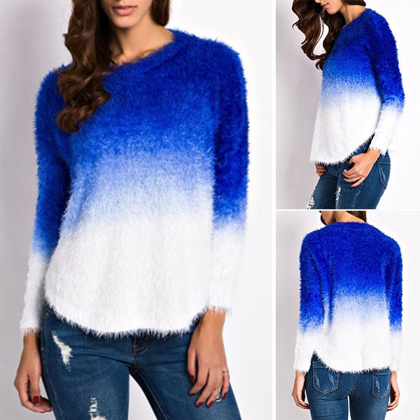 Fashion Color Gradient Long Sleeve Round Neck Sweater