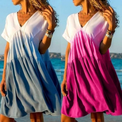 v-neck and a loose silhouette design,this dress definitely can offer you a cool and comfortable day.