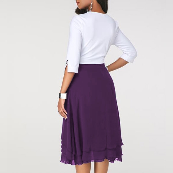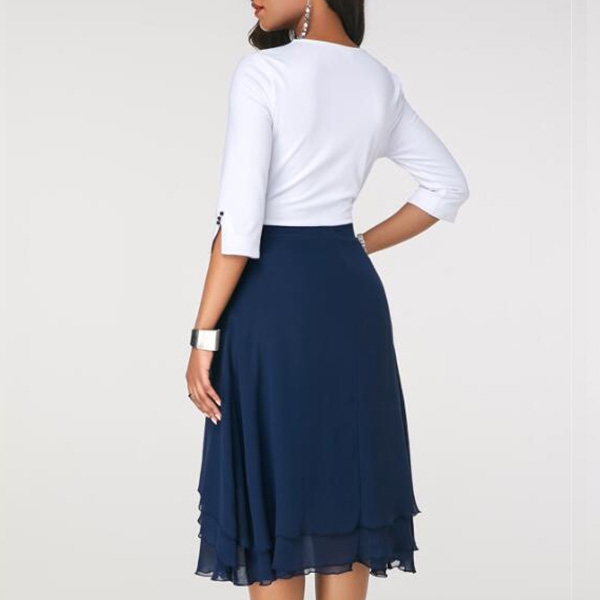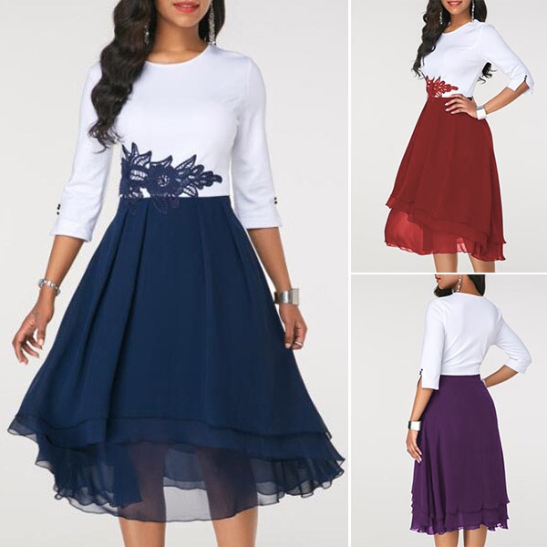 This effortless beautiful dress is perfect for any last-minute invitation. It is finished with 3/4 sleeve and round