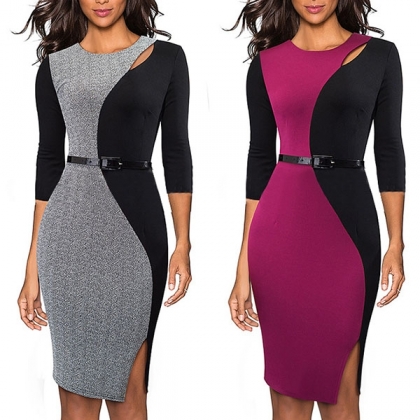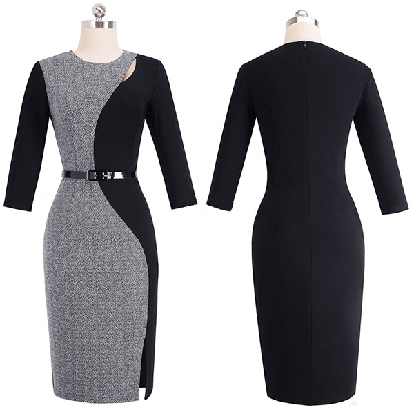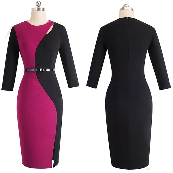 finished with 3/4 sleeve,round neck and a fit silhouette,this dress not only can display your perfect curve,