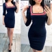Contrast color design makes it look not so monotonous,while the 3/4 sleeve and square collar design can exude