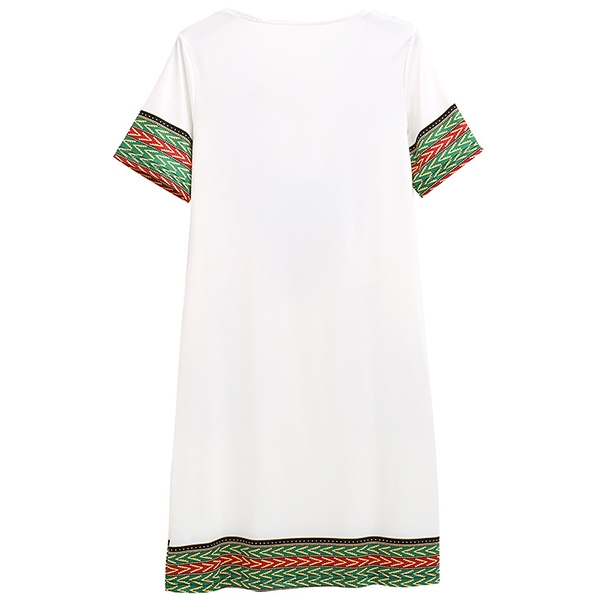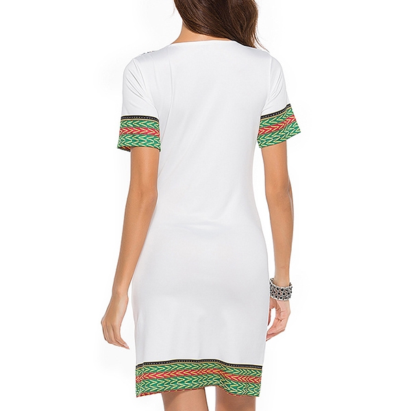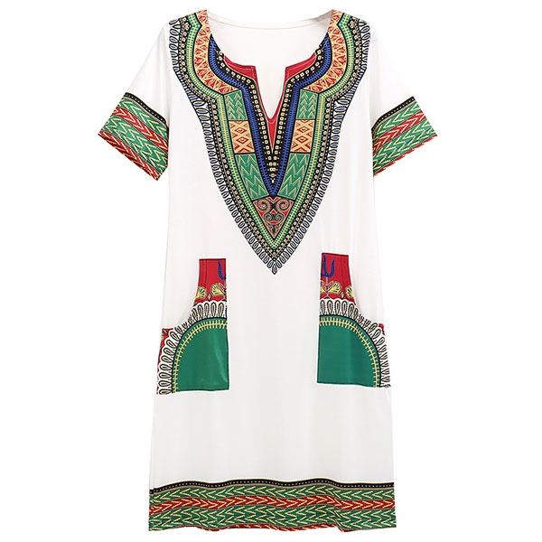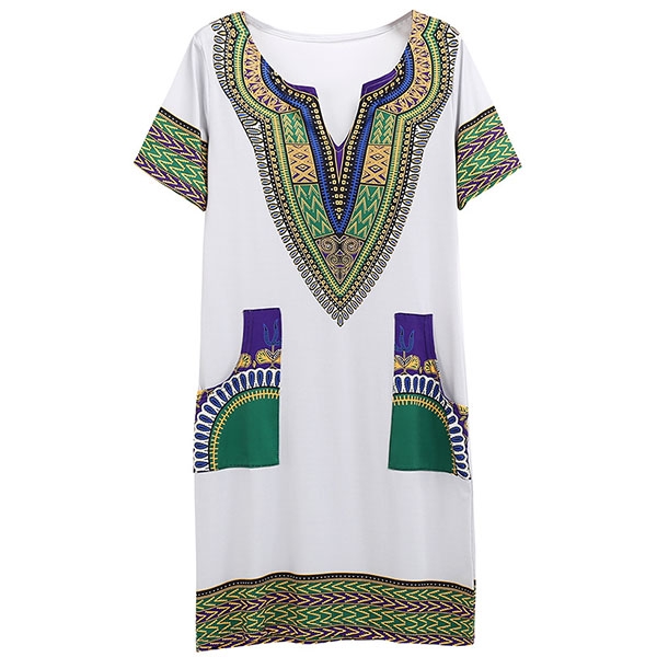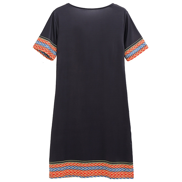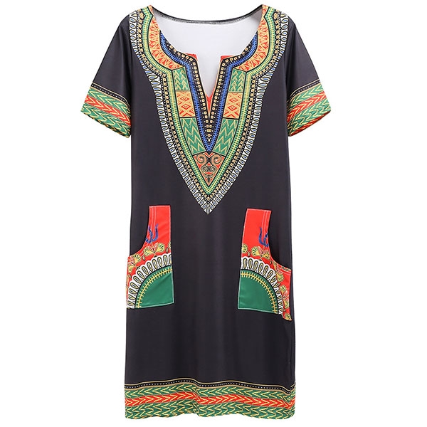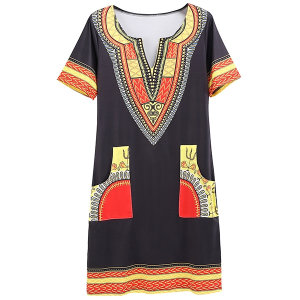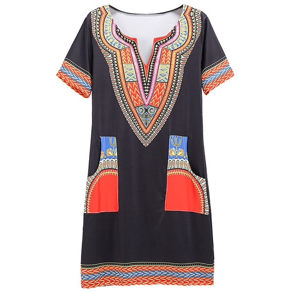 with deep v-neck,short sleeve and contrast color, simple and concise.The exquisite printed