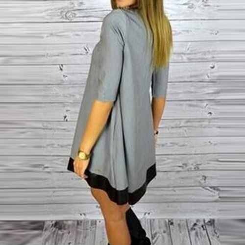Fashion Contrast Color Half Sleeve Round Neck Loose Dress