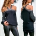 Contrast color style, with halter, long sleeve and off-shoulder design , simple but fashionable,