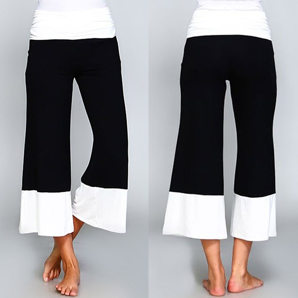Fashion Contrast Color High Waist Casual Wide Leg Pants