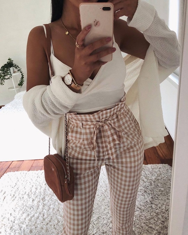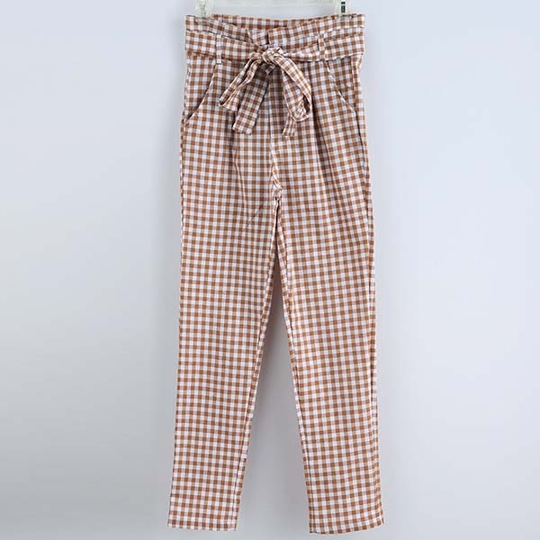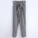 The pants in high quality and soft material,with high waist,plaid and contrast color sedign,stylish and cool.