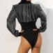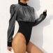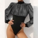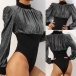 This bodysuit is designed with contrast color element,stylish and attractive,and the lantern sleeve design