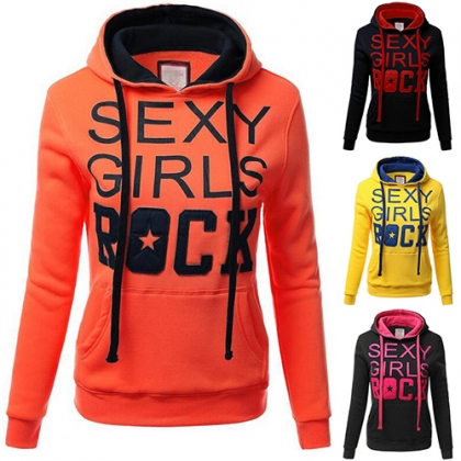 sweatshirt to become a fashion and cool girl. Letters printed style, boasting contrast color, hooded,