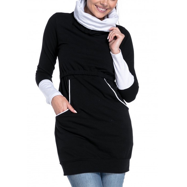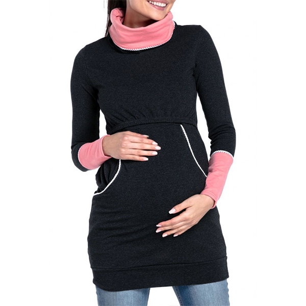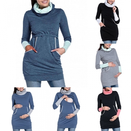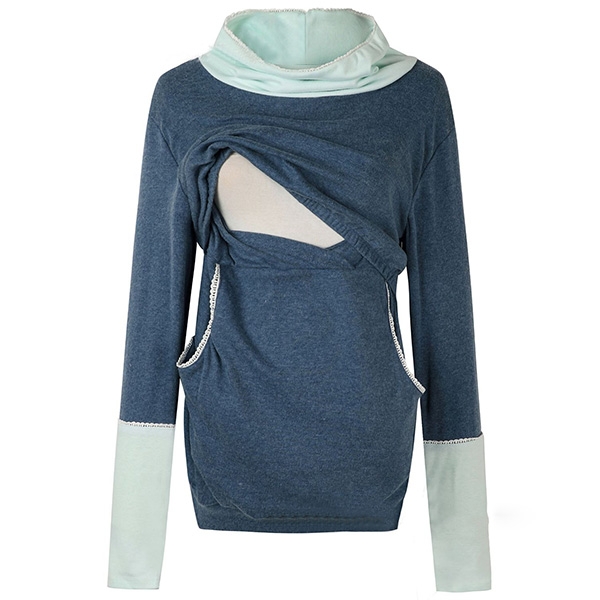 For these breastfeeding mothers,this sweatshirt is a good choice. The contrast color and cowl neck