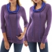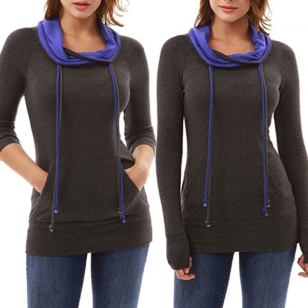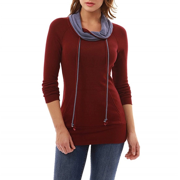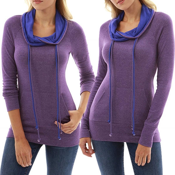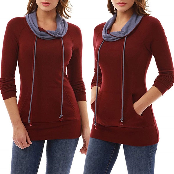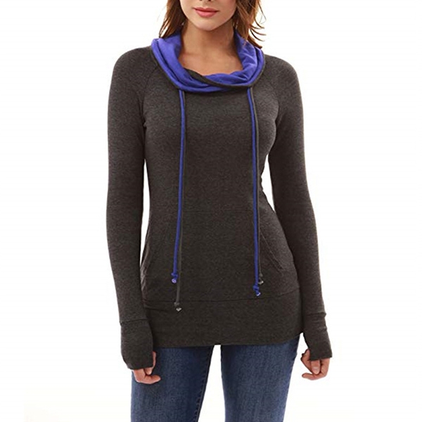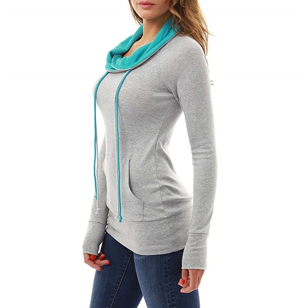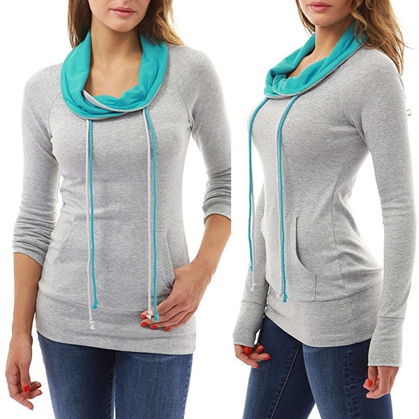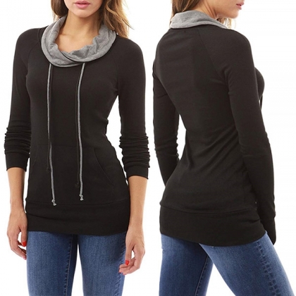 Fashion Contrast Color Long Sleeve Cowl Neck Slim Fit Sweatshirt
