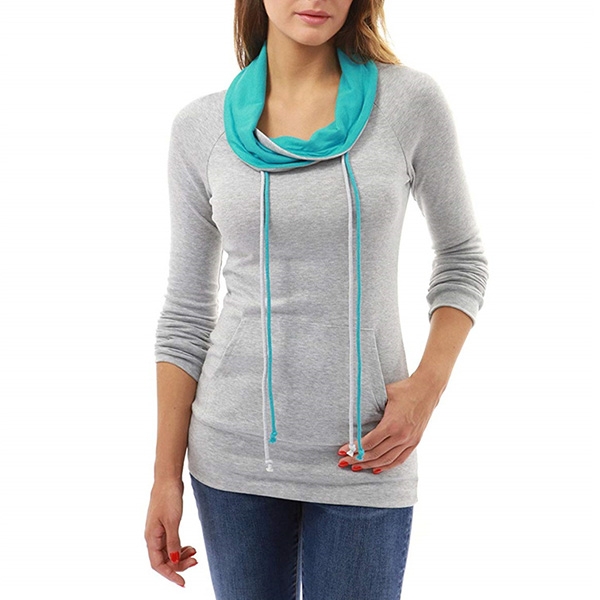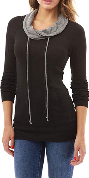 with long sleeve,drawstring cowl neck,front pocket and a fit