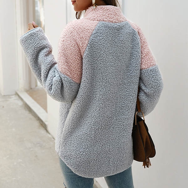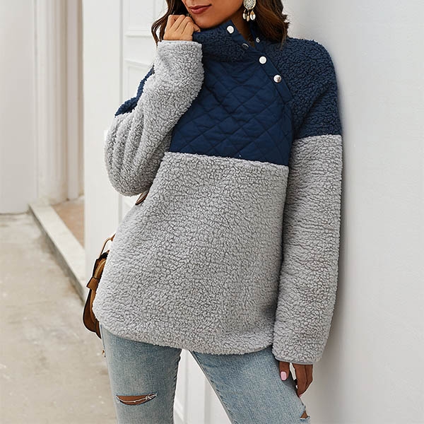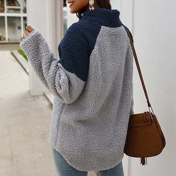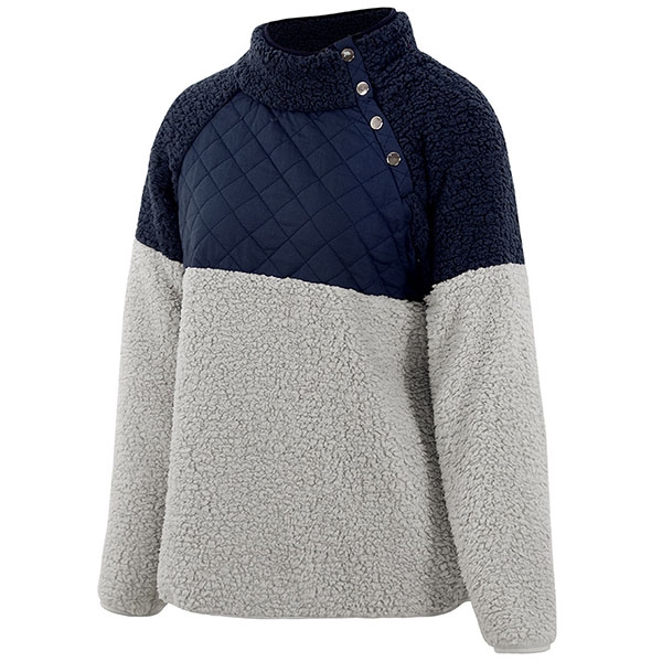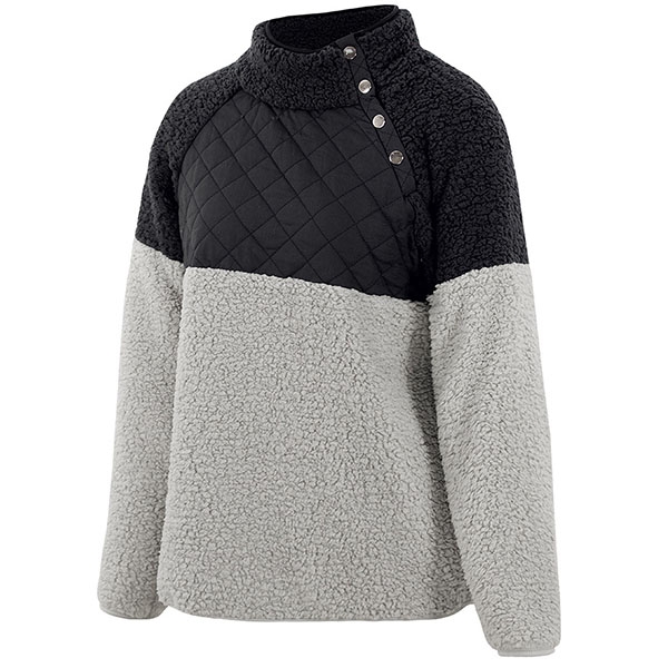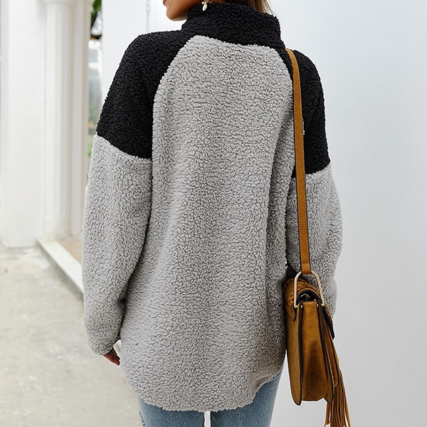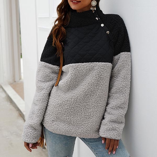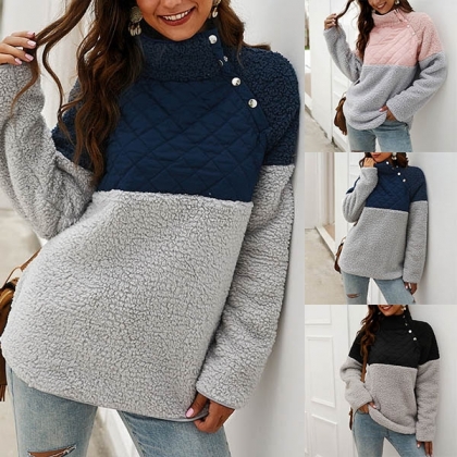 Contrast color design will boost its charm. Finished with long sleeve and high collar design,