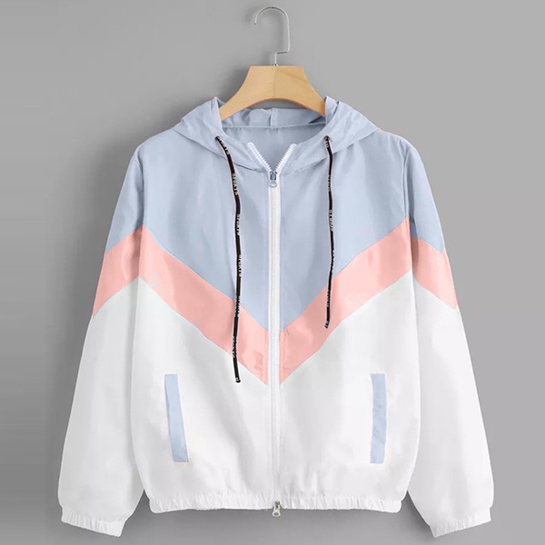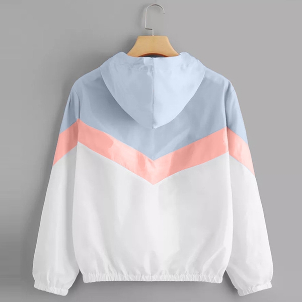 Contrast color style,with long sleeve,hooded silhouette,front zipper closure and elastic hem design,