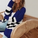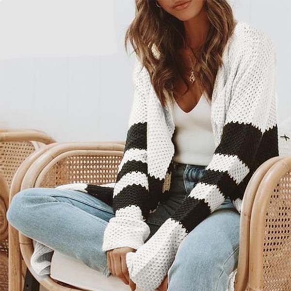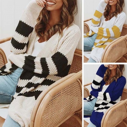 autumn days? Then look no further than this knit cardigan. Contrast color style,with long sleeve