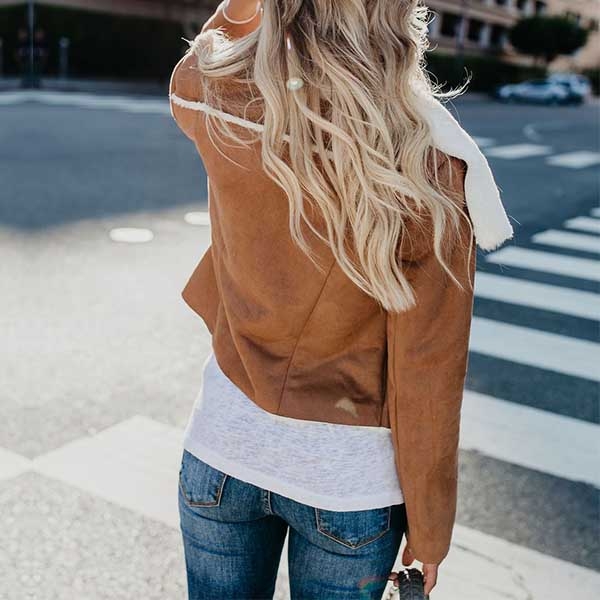 It would be a wise choice to slip into this jacket when the days get cold. Contrast color and unique lapel