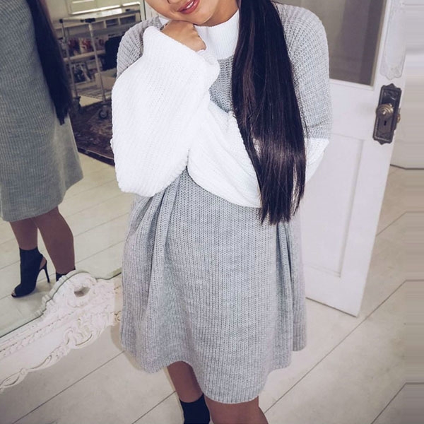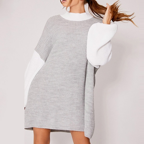 When the cold sweater hits,you can slip into this sweater dress to keep yourself warm. Contrast color design
