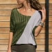 You can enjoy the cozy and style which is offered by this t-shirt. Contrast color and oblique v-neck design