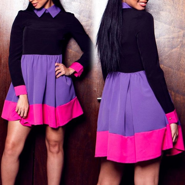 dress solve all your worries. Contrast color style,finished with long sleeve,POLO collar and high