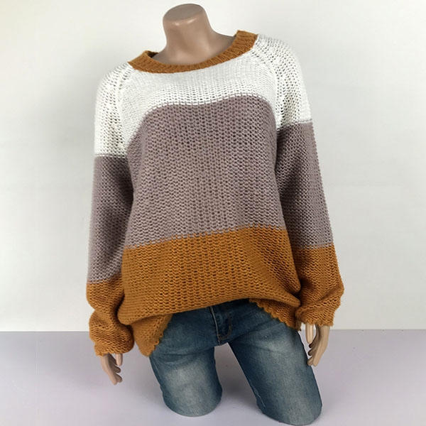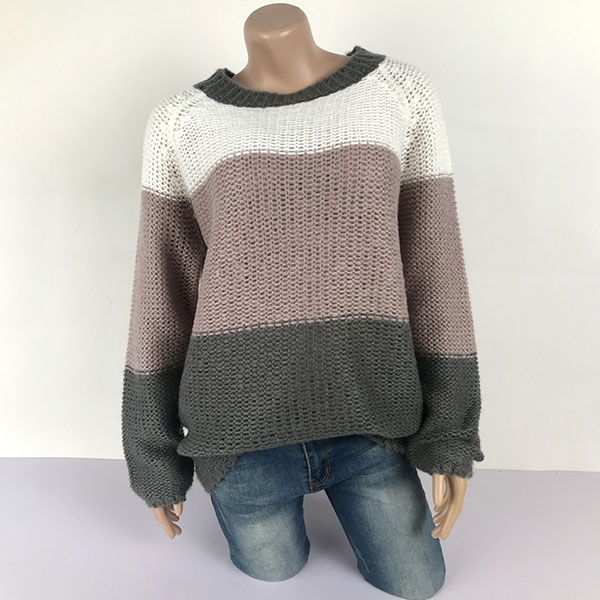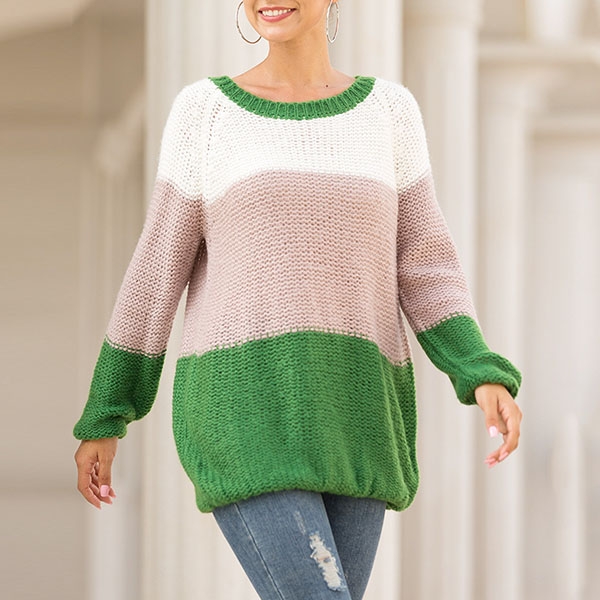 What makes this sweater look so fresh and attractive? We think it owes to the contrast color element design.