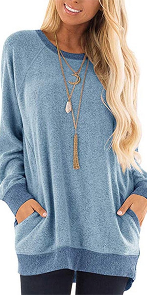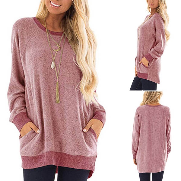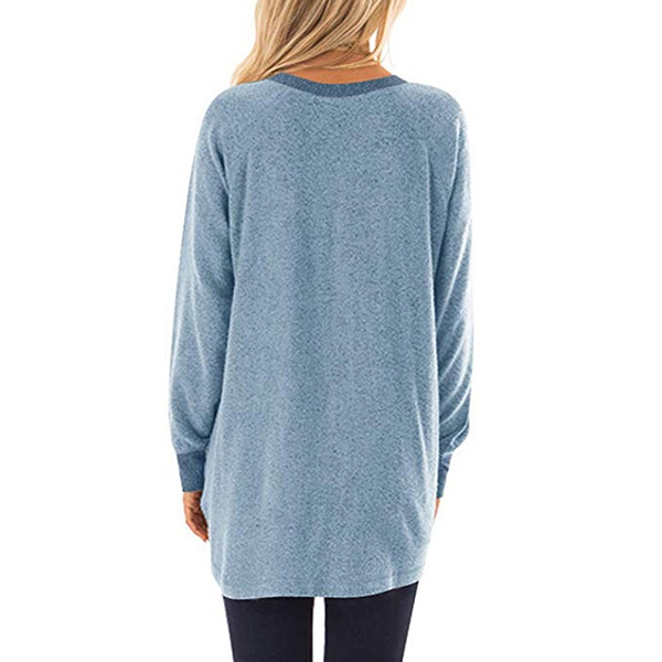 Fashion Contrast Color Long Sleeve Round Neck Loose T-shirt