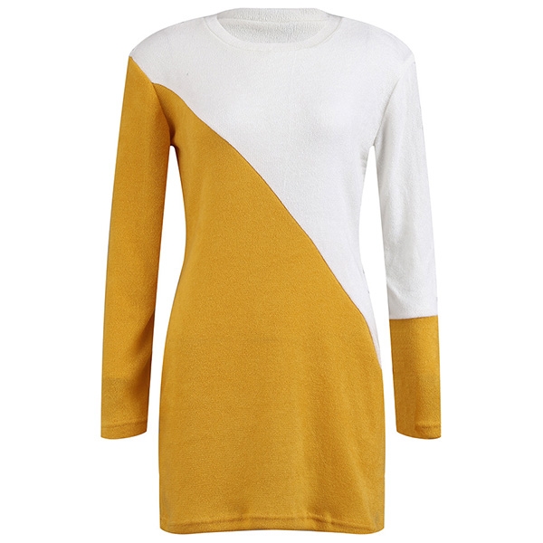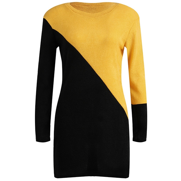 This sweater dress is designed with contrast color element,stylish and popular. Finished with long sleeve,