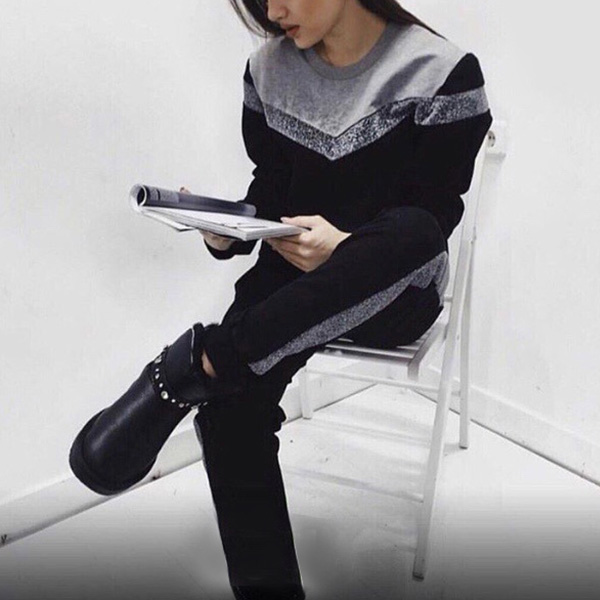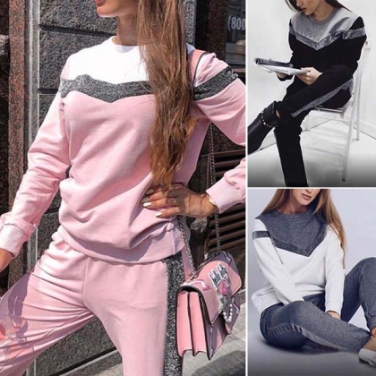 Contrast color style,including a long sleeve round neck sweatshirt and a sports pants,this sports