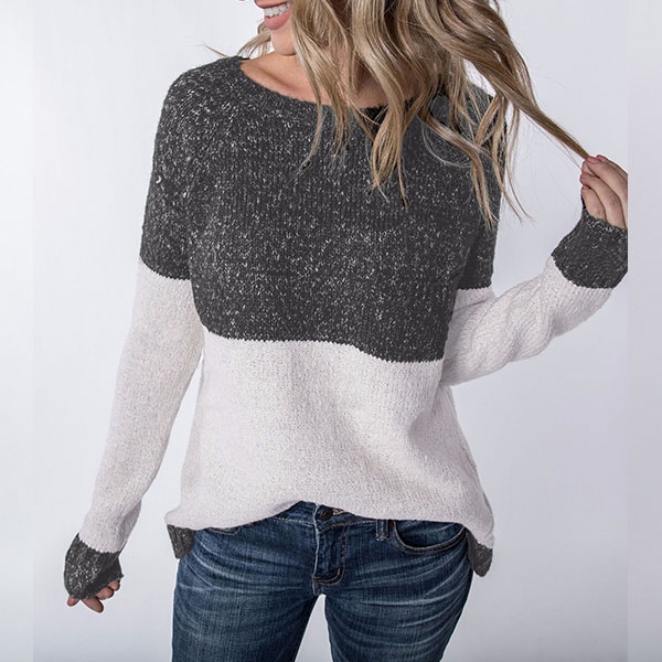 The contrast color design breaks the simple and dull design,while the long sleeve,round neck and clean