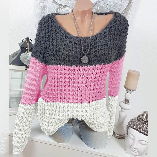When the days get cold,you can invite this sweater to your wardrobe. Contrast color design makes