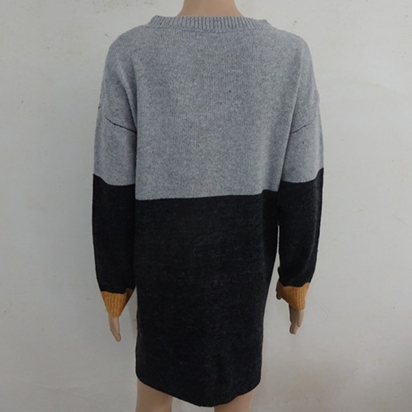 This sweater dress is perfect fit for these cold days. The contrast color design breaks the simple and dull
