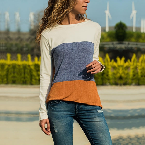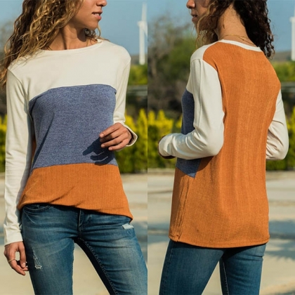 wardrobe. Contrast color style,crafted form soft and breathable fabric,with long sleeve and round