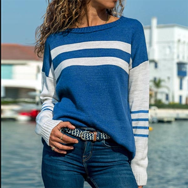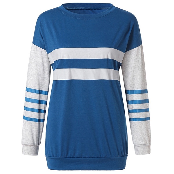 Fashion Contrast Color Long Sleeve Round Neck T-Shirt