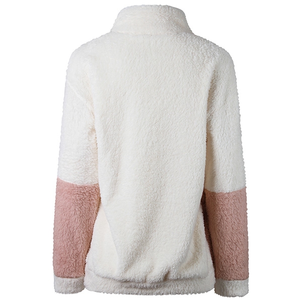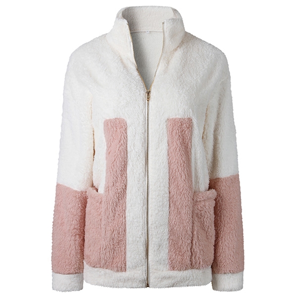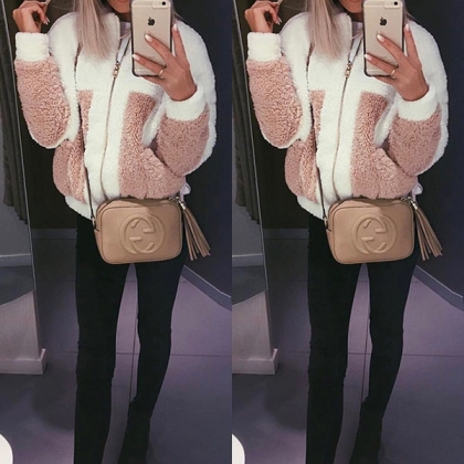 Contrast color style, one zipper down the front of the coat,and high quality and soft material would give