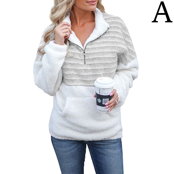 The the weather gets cold,you can slip into this plush sweatshirt to stay warm. Contrast color element