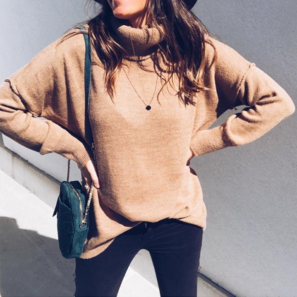 finished with long sleeve,turtleneck and a loose silhouette,this sweater can keep you warm