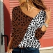 Fashion Contrast Color Long Sleeve V-neck Leopard T-shirt