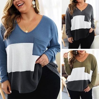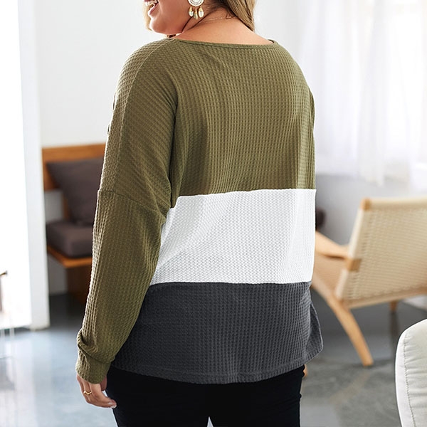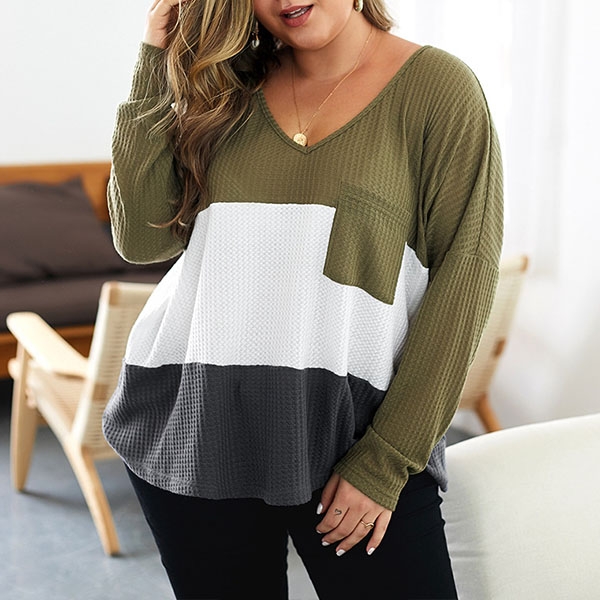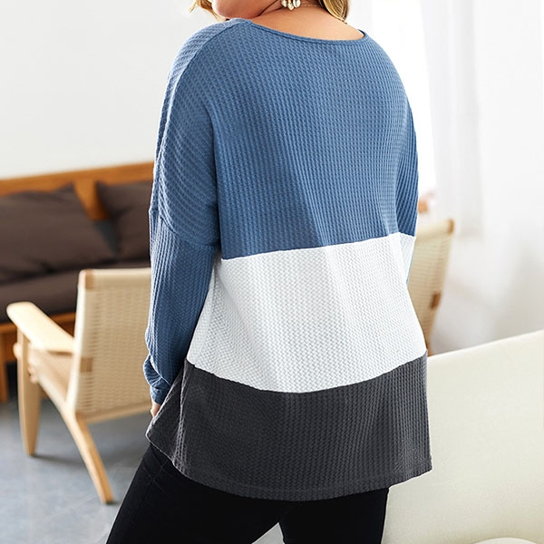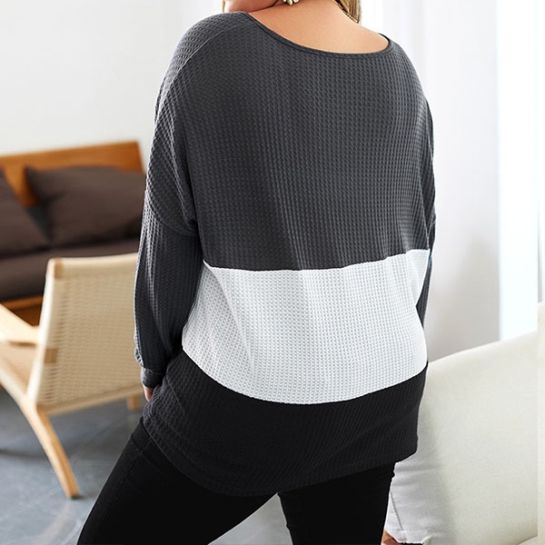 This oversized knit top is perfect fit for these girls with a full figure. Contrast color element design