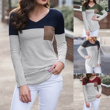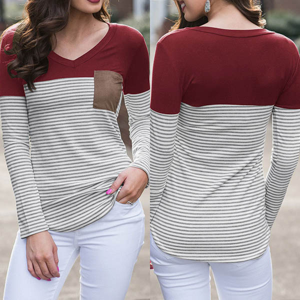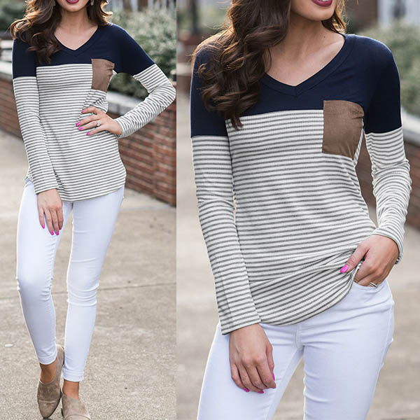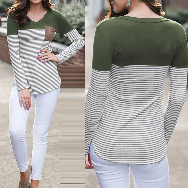 of contrast color and striped element,stylish and popular. And the chest patch pocket design will further