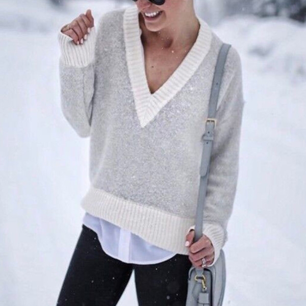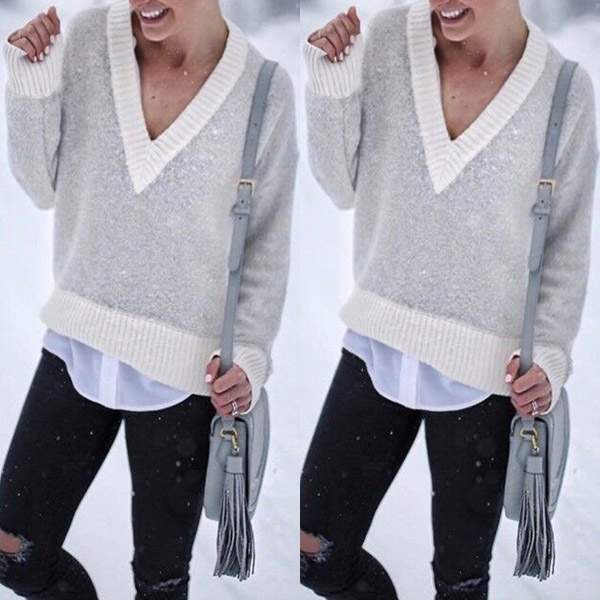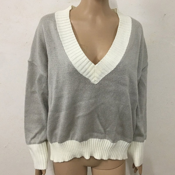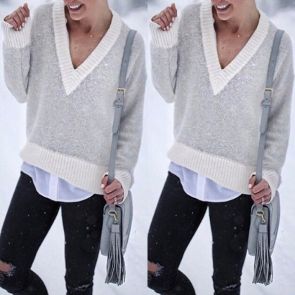 Contrast color style,with long sleeve,v-neck and a loose silhouette,this sweater can offer you different
