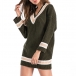 You can look effortlessly charming and beautiful in this sweater dress. Contrast color design will give you a