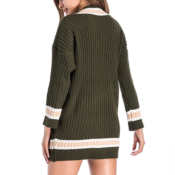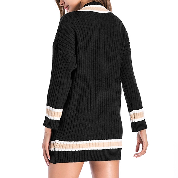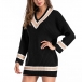 Fashion Contrast Color Long Sleeve V-neck Sweater Dress