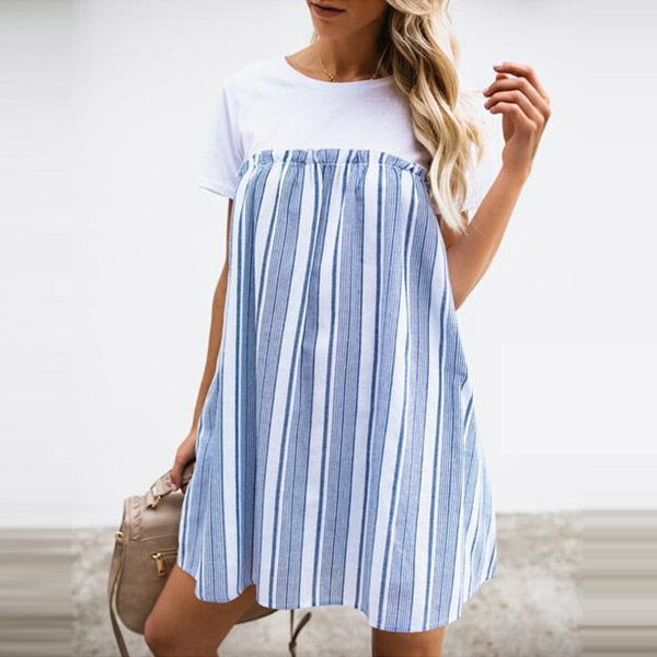 a hand.Outfitted with contrast color , short sleeves and round-neck design,which is good to improve your elegant