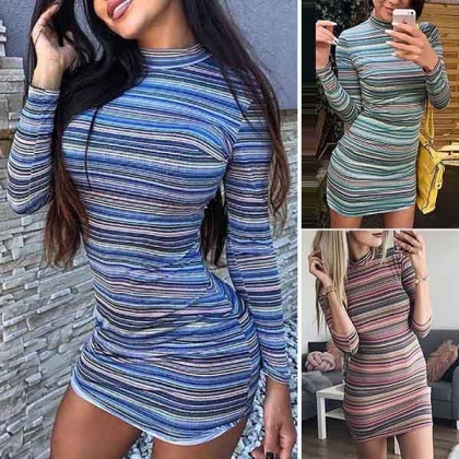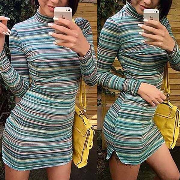 Giving you a new fashionable look through wearing this striped dress.Its round neck style,with slim fit and