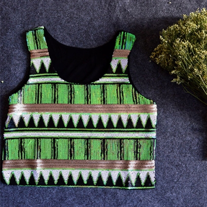 Fashion Contrast Color Sequins Sleeveless Crop Tops